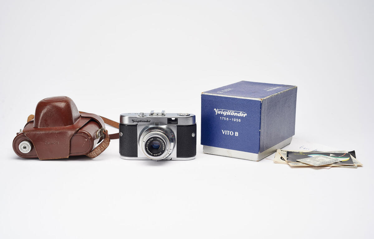 Voigtländer er uten tvil verdens lengstlevende kameranavn. Johann Christoph Voigtländer begynte å lage vitenskapelige instrumenter i Wien allerede i 1756, og selskapet hans lagde daguerreotypi-portrettkamera fra 1840 med Josef Petzvals objektiv, i fotografiets spede barndom. De fortsatte med å produsere kameraer langt inn på 1900-tallet. Vito B er den første i en serie kameraer Voigtländer produserte, som ble introdusert i 1954. Serien består av øyesøkerkameraer for 35 mm film. Vito B kom i to litt ulike versjoner. Dette har en Color-Skopar f3.5/50mm og Pronto-SVS lukker.