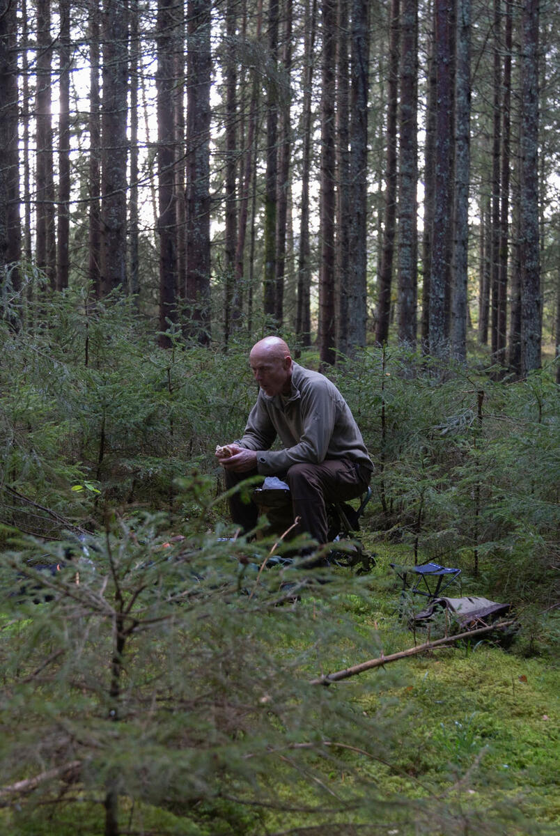 – Jeg ble invitert til å bli med på elgjakt av en gjeng i Aremark, og de var rundt 50 jegere i alderen 60-80 år. Det var jakta som var grunnen til at de var der, men kvelden før jaktstart ble fylt med karsk og rullings rundt bålet.