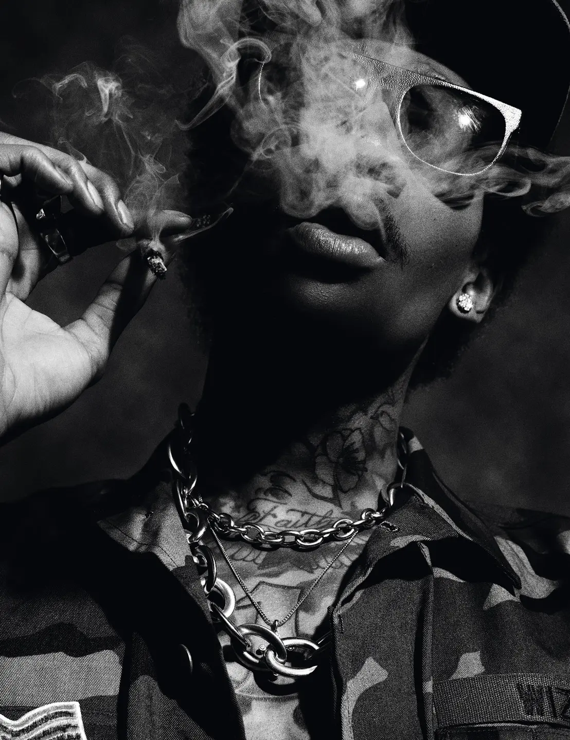 Wiz Khalifa smoking, New York 2011. Sølv gelatin-print på aluminium. © Mikael Jansson. - 4/8