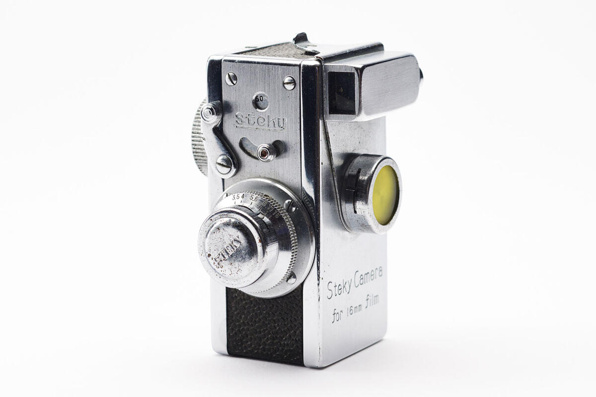 Stor i Japan … Men et lite sølvkamera som tar minimal plass i veska, det er gull for en amatørfotograf som ville reise lett. Eller kanskje for en spion på hemmelig oppdrag i årene etter andre verdenskrig? Navnet på den lille fotografiske følgesvennen Steky minner om det engelske ordet sticky, men heller enn et påklistret vedheng var kameraet lite, elegant og for hånden når du temmelig ubemerket ønsket å ta gode bilder.